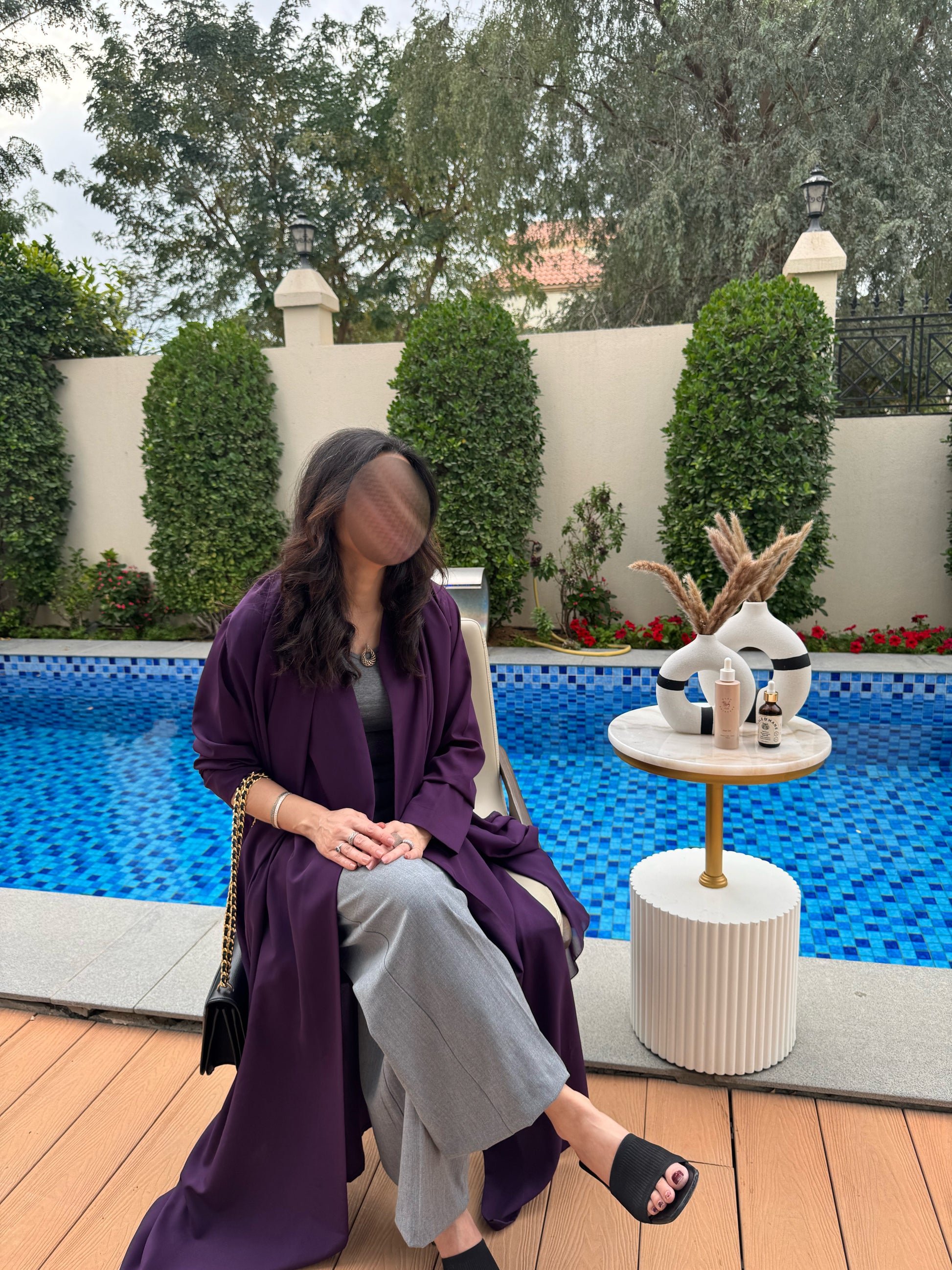 Crafted from crepe, this abaya is both sturdy and flowy, offering a perfect balance of structure and elegance. Its minimalist design and effortless drape make it a timeless, chic staple for any occasion.