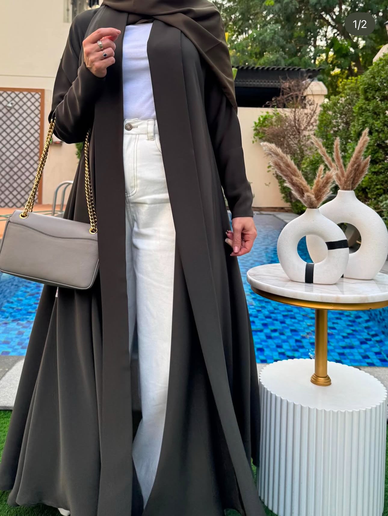 Crafted from premium Nada fabric, this abaya blends structure with flow for a refined, graceful look. The A-cut design gives it a flattering shape that moves effortlessly while keeping a modest silhouette. Soft, lightweight, and breathable — it’s perfect for everyday wear, university, or elegant outings. Simple yet sophisticated, this piece is all about timeless comfort and quiet luxury.