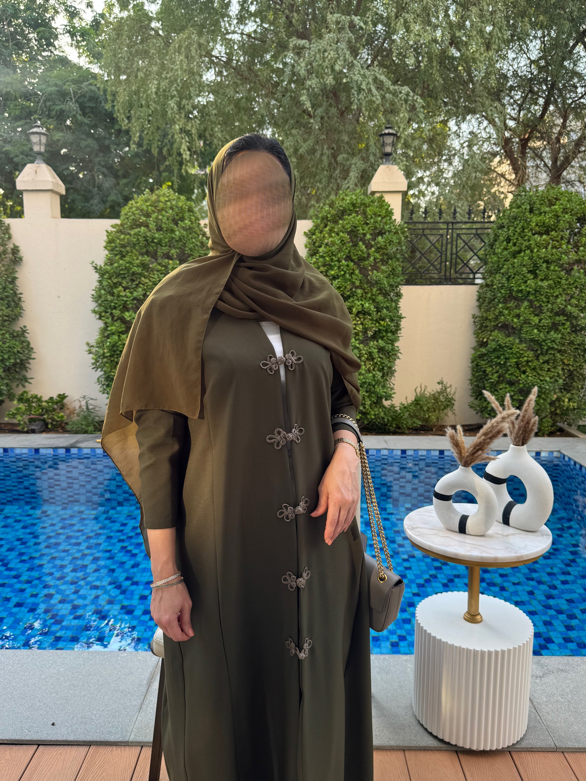 A timeless silhouette elevated with intricate knot detailing down the front, this abaya blends tradition with quiet sophistication. Designed for the woman who appreciates subtle craftsmanship, each fastening adds a graceful rhythm to the flow of the fabric. Lightweight, modest, and endlessly versatile — it’s the perfect piece for both everyday elegance and refined gatherings.